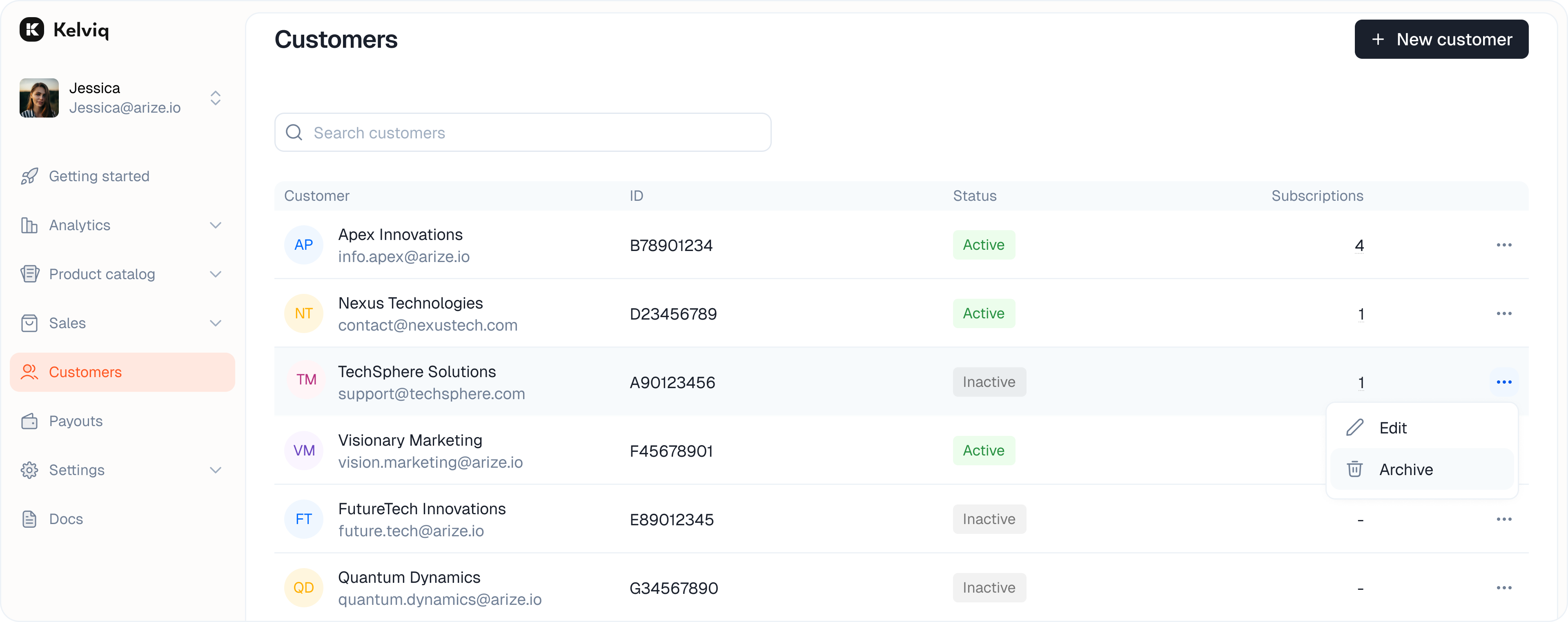 Archiving makes a customer inactive and revokes their access. Click the three dots and select Archive.
