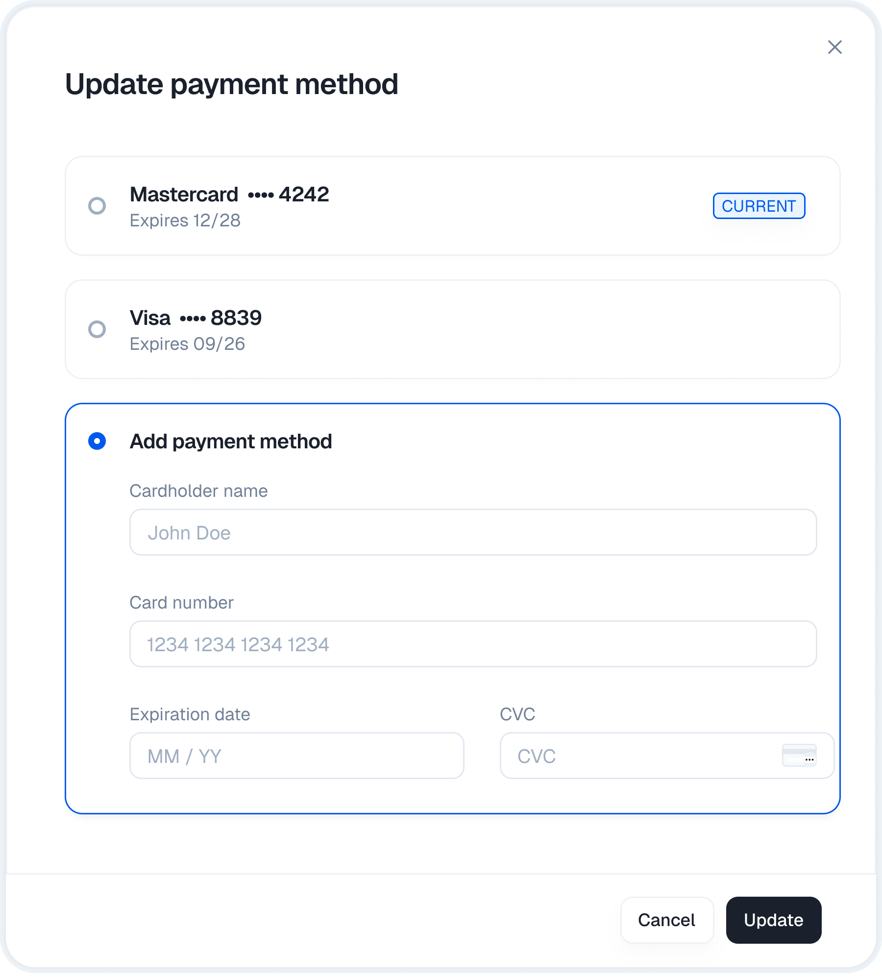 - Payment methods Update credit card details or switch methods for future renewals.