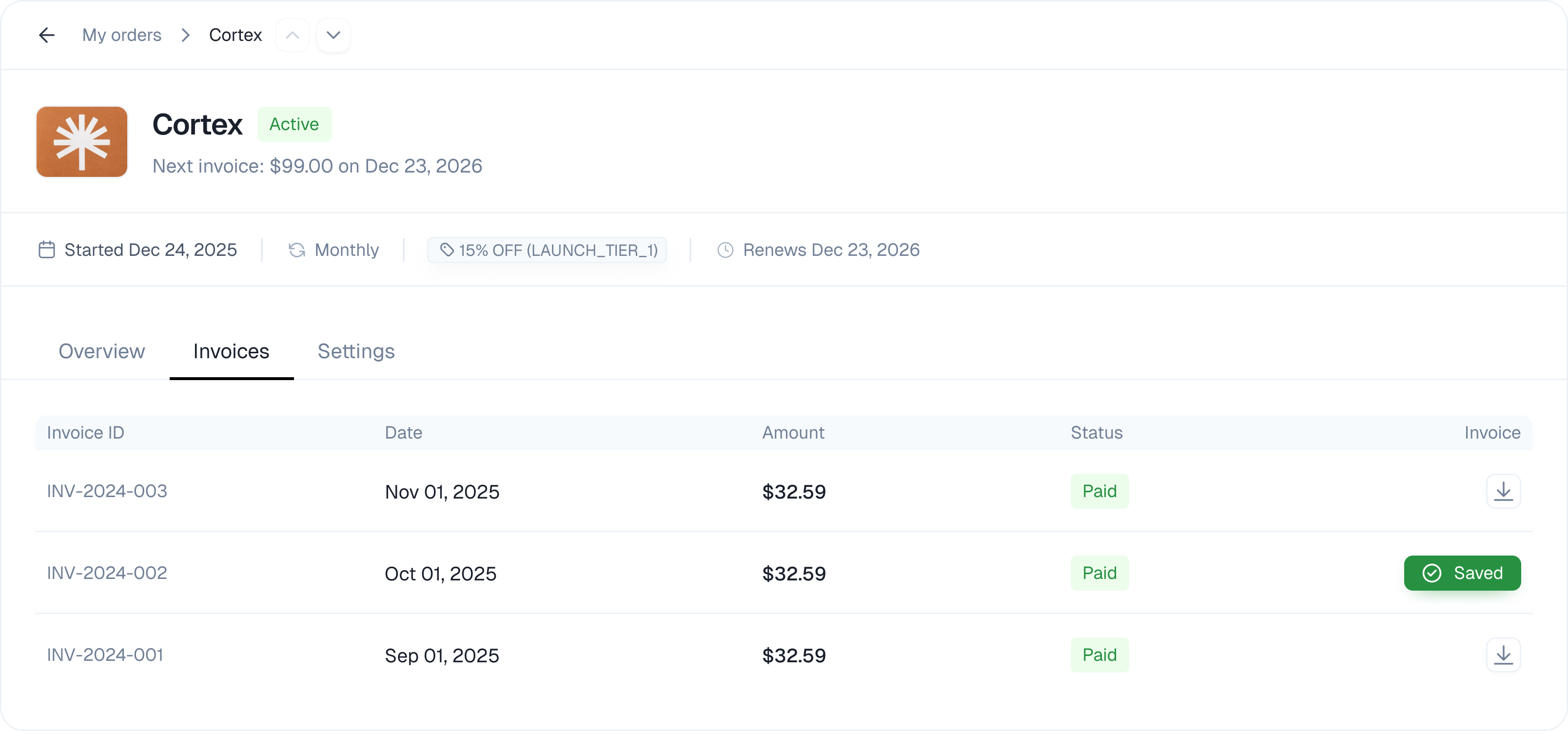 Customers have control over their lifecycle without contacting you.- Change plans Upgrade to a higher tier or downgrade.