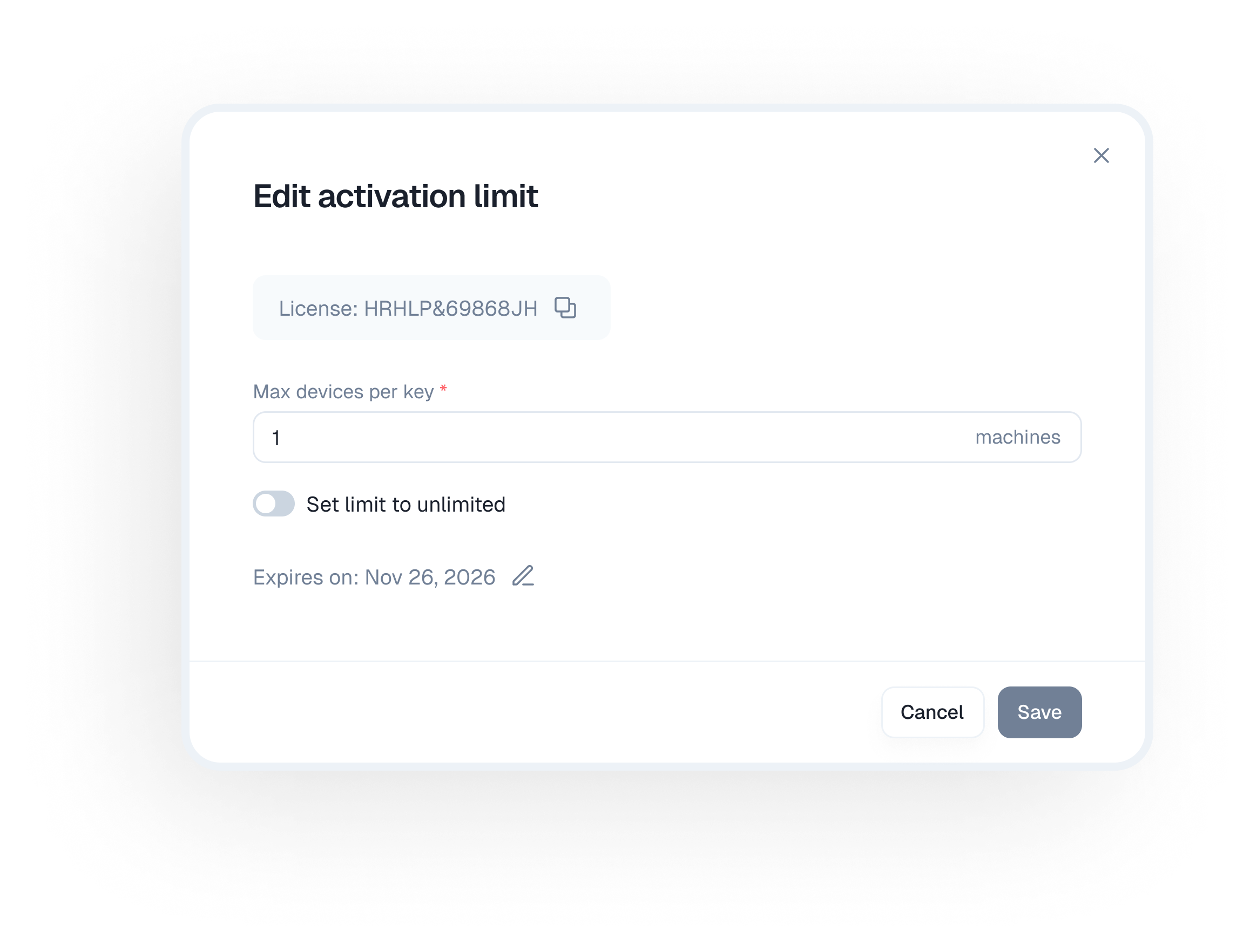 Control how many times a single license key can be activated across different devices.