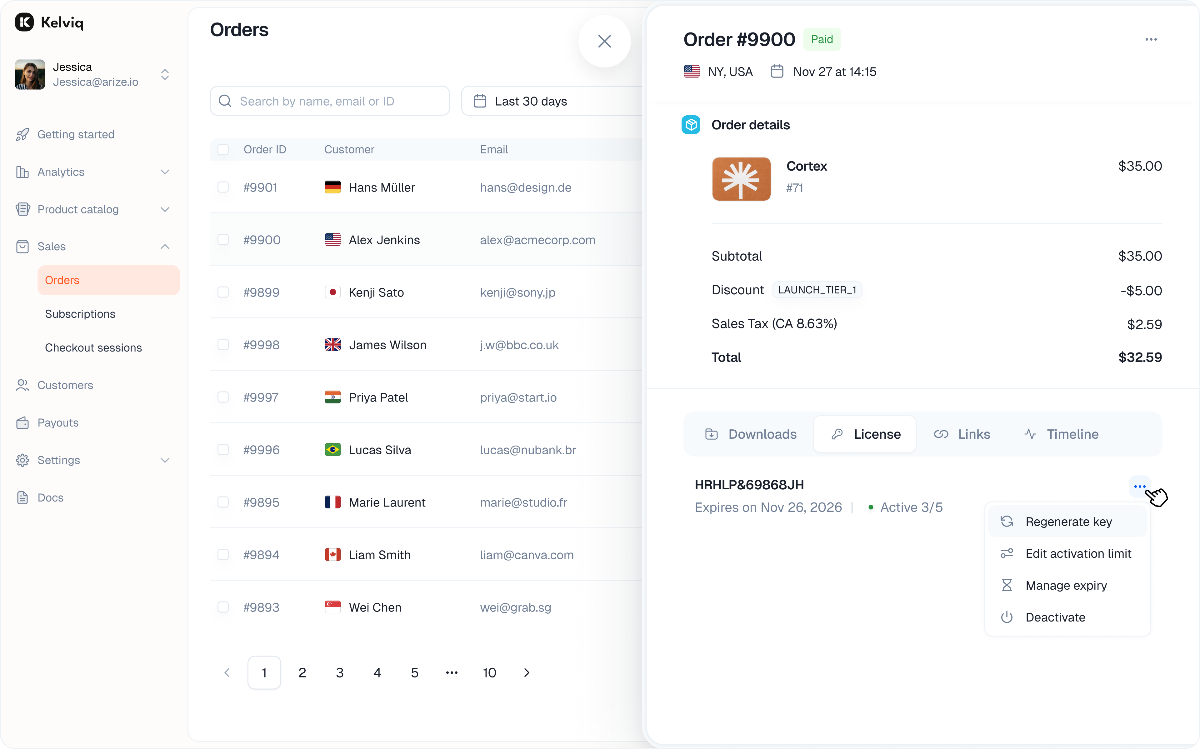 Once a customer places an order for a plan with licenses enabled, you can manage their license from the Order Details page.Viewing License Information