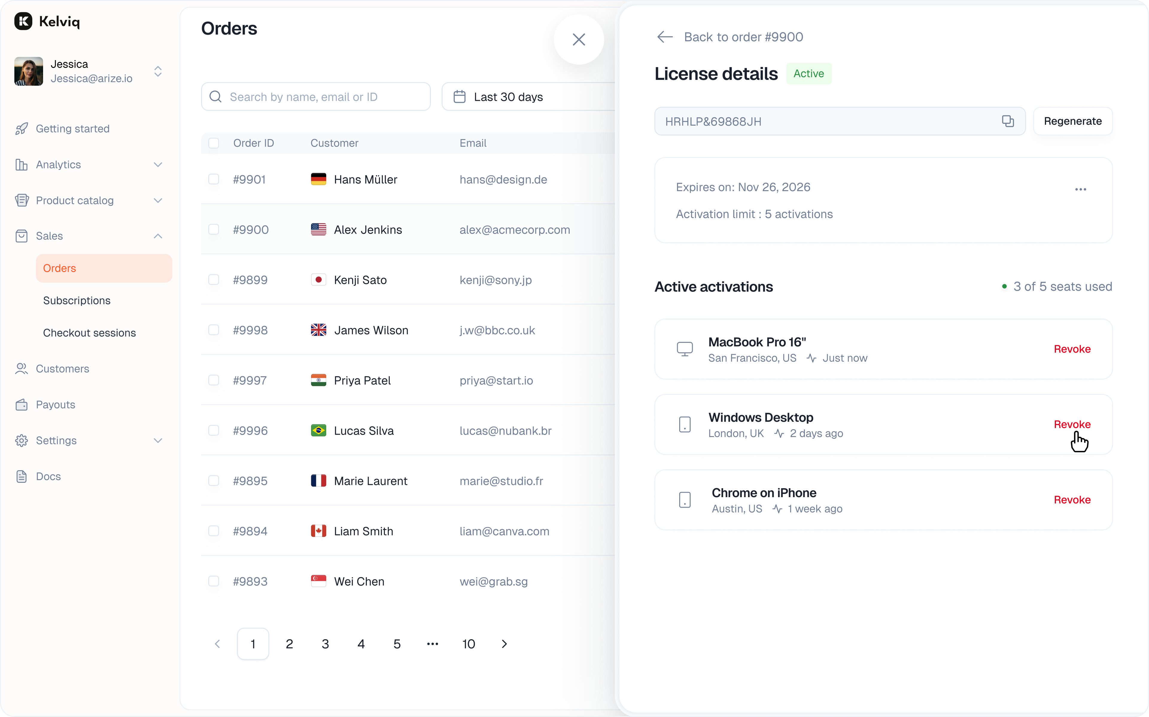 - Last seen timestamp (when the license was last validated)