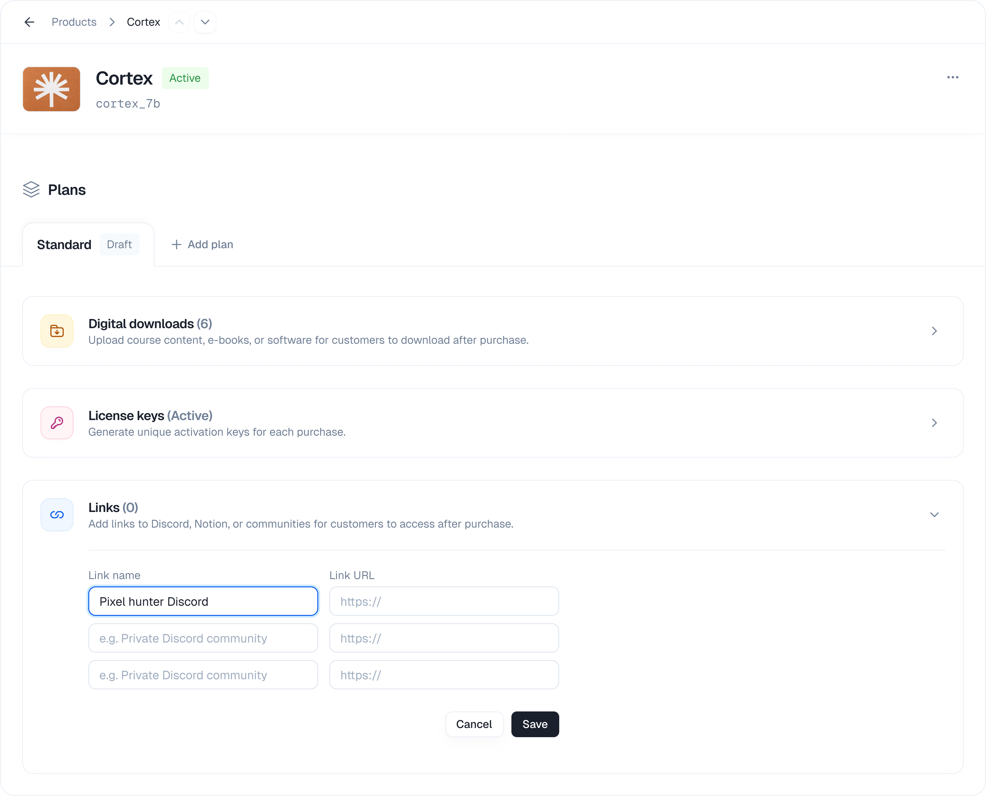 Choose clear, descriptive names that tell customers what they’ll access:| Good Examples | Why It Works |